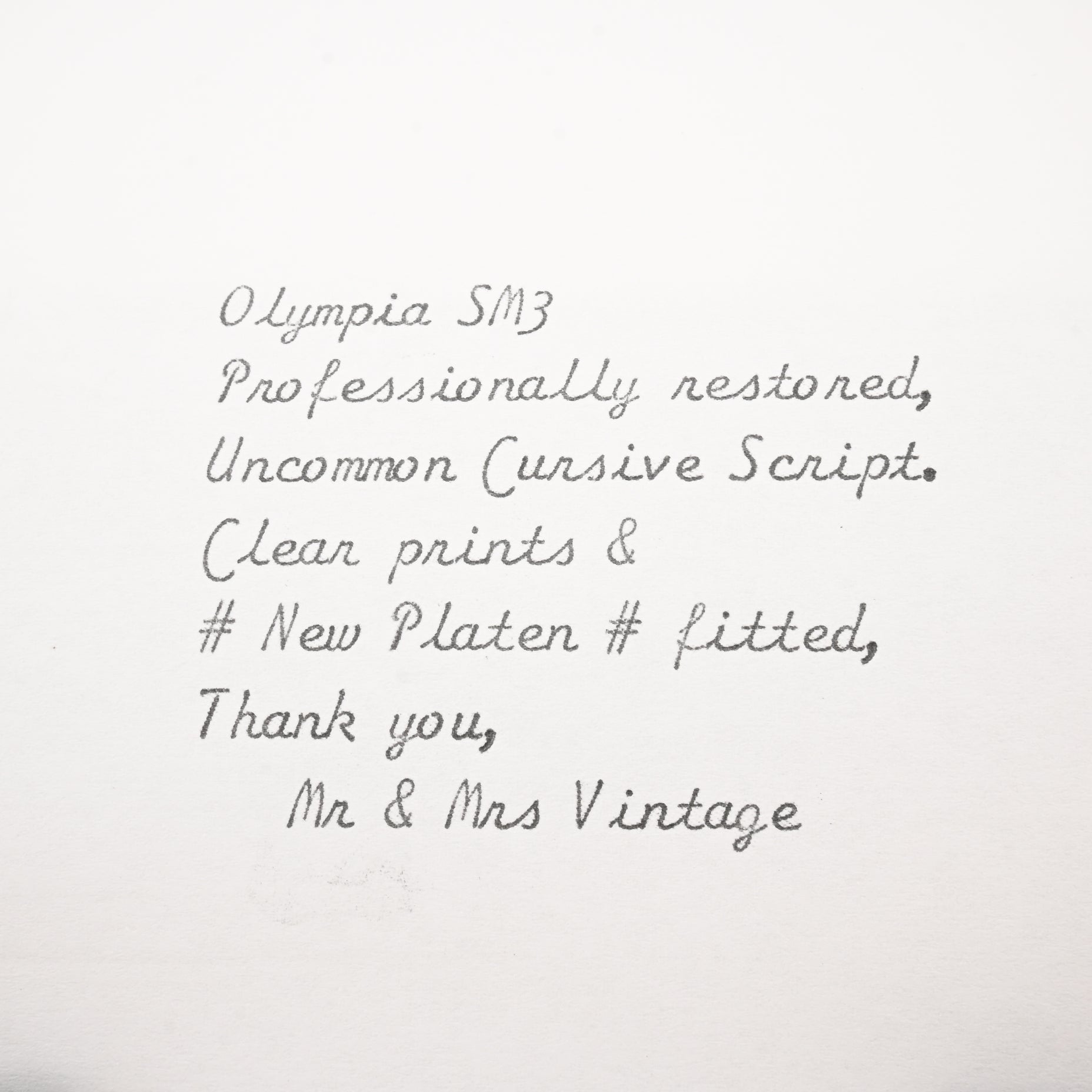 “Cursive Script” typeface, rendered at approximately 11 points per inch, lending a distinctive, elegant flair to every word typed.