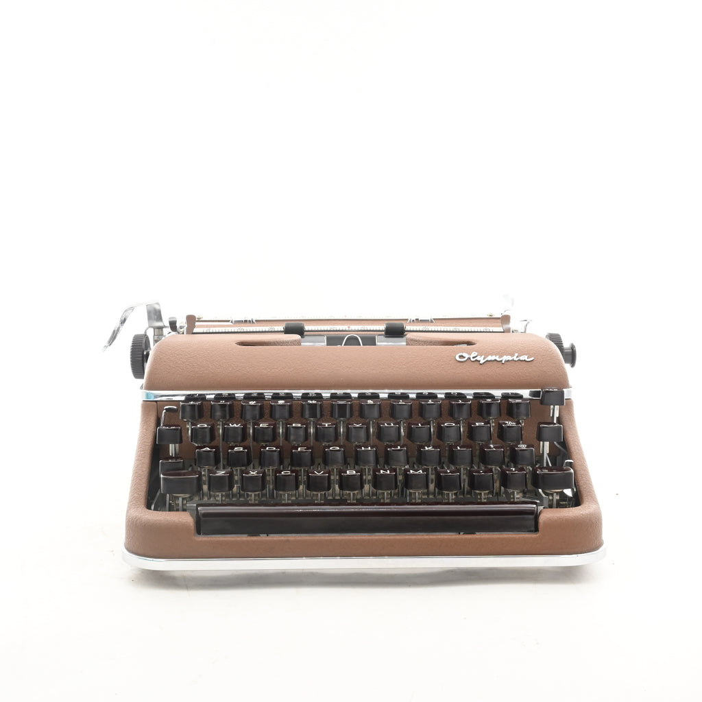 "Cursive Script" Brown Olympia SM3 Typewriter with rare leather case - New platen