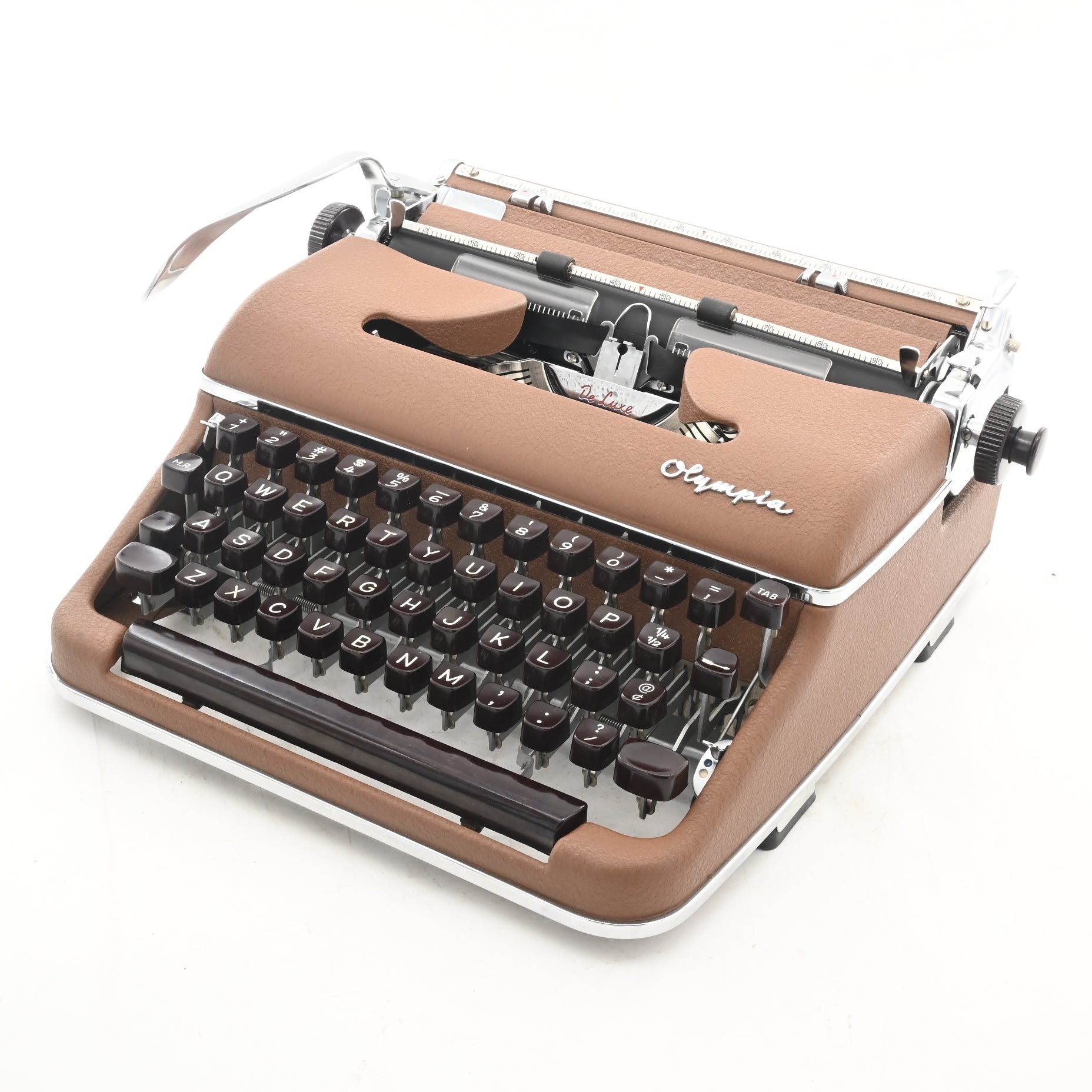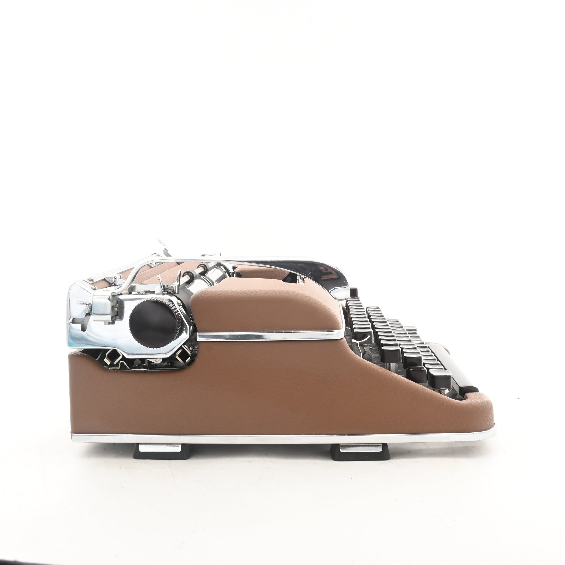 Combining exceptional rarity with highly refined restoration, this typewriter is captivating in both form and function. The original brown finish, rare leather case, and cursive-script typeface make it a standout addition to any desk, studio, or collection. Backed by professional tuning and expert support, it's ready to inspire writing sessions that blend nostalgia with smooth, tactile performance.