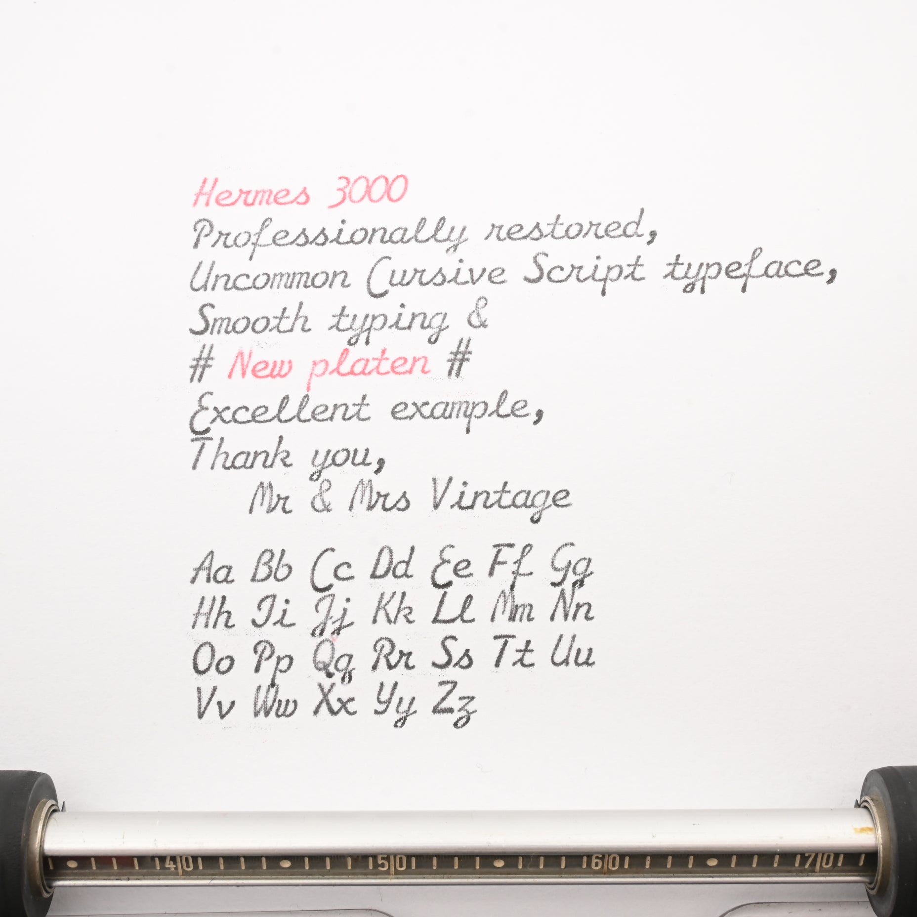 "Cursive Script" Hermes 3000 Typewriter - NEW platen