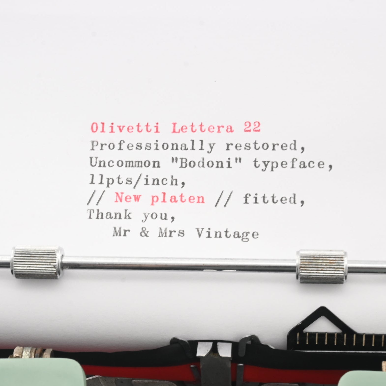 Olivetti Lettera 22 Typewriter - New platen