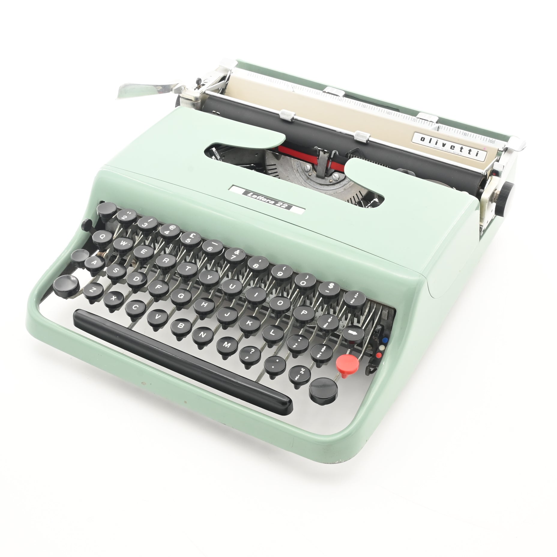 Experience the enduring elegance of the Olivetti Lettera 22, a mid-century icon of compact Italian design & manufactured in Glasgow- Scotland. Fully serviced and restored to excellent typing condition, it merges vintage charm with contemporary reliability.
