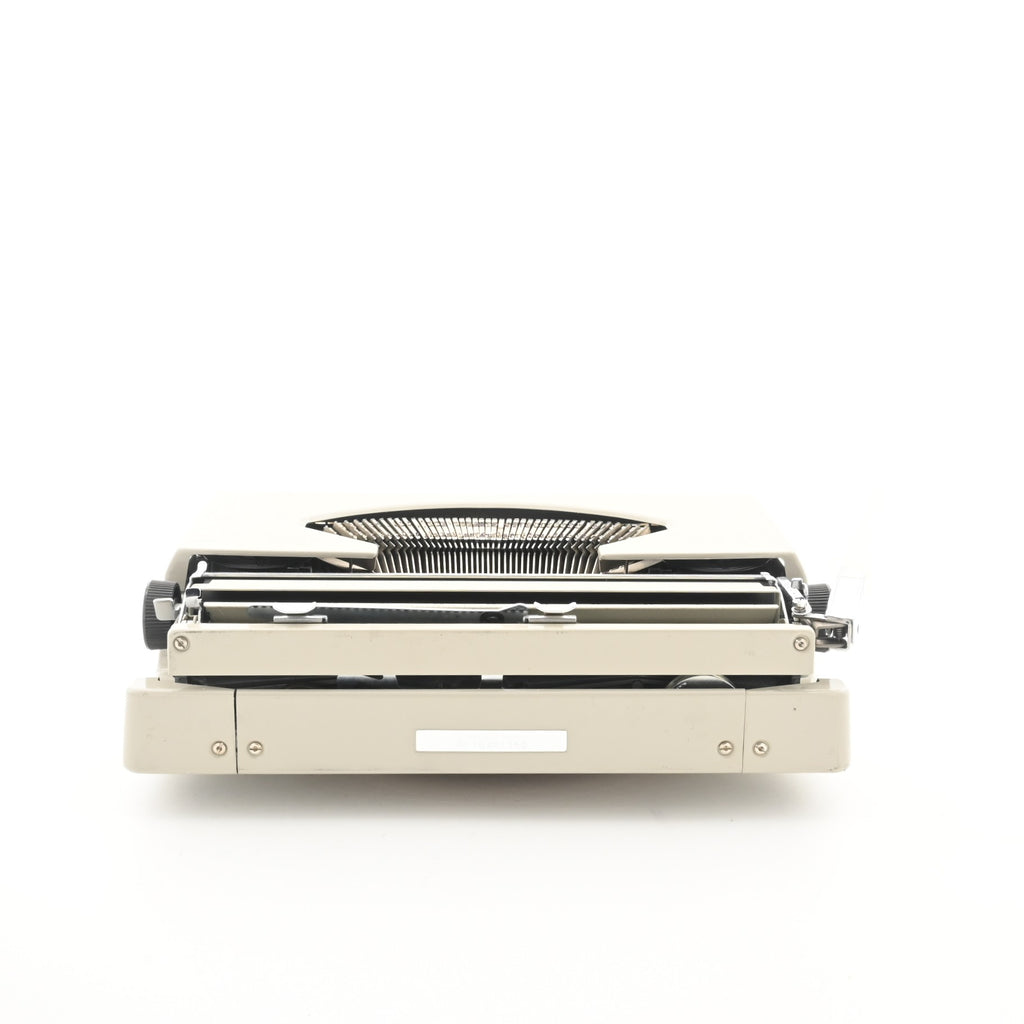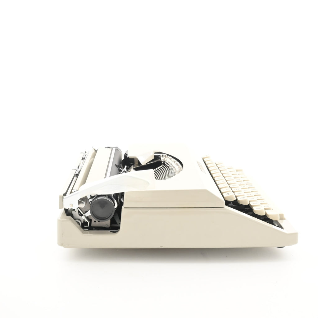 Discover the compact elegance of the Boots PT400 that is a rebranded Silver Reed typewriter, fully restored to perfect working order. A delightful example of mid-century portability, this machine delivers smooth typing and crisp, clean prints from the moment you use it.