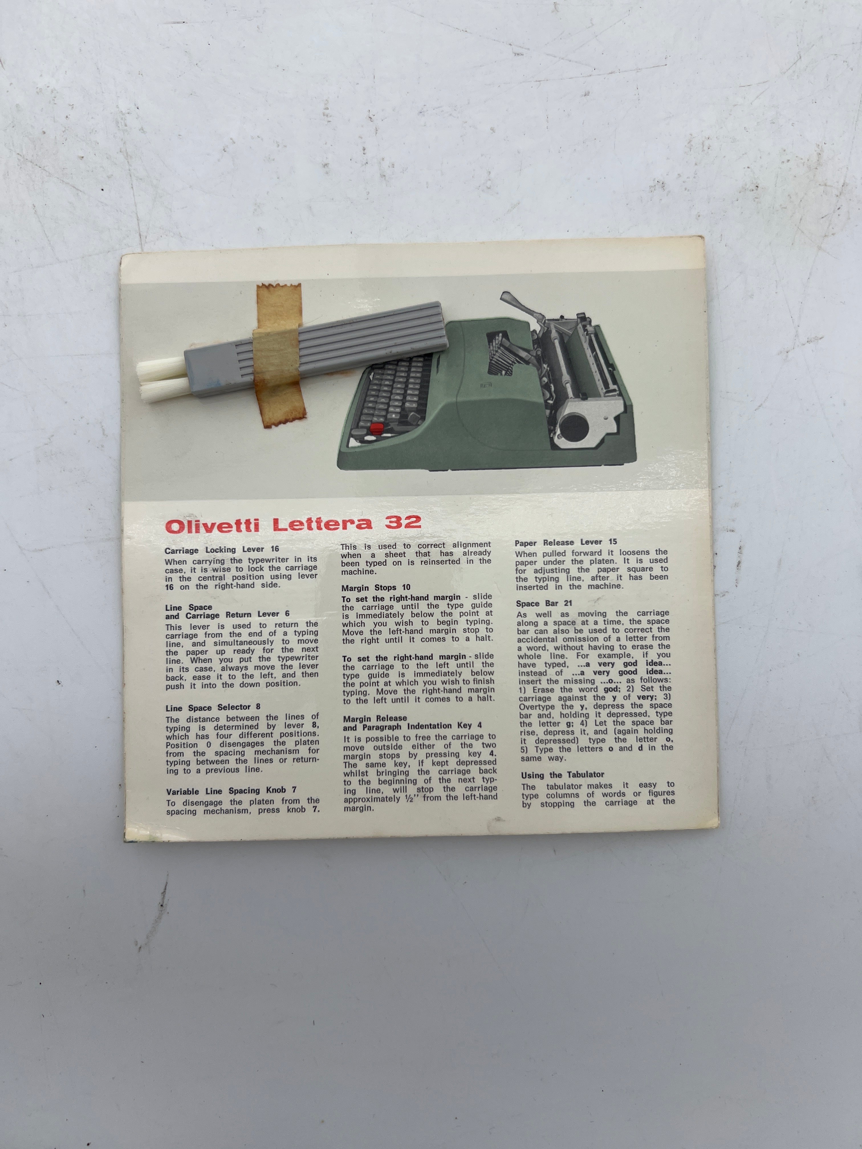 Original Olivetti Lettera 32 typewriter manual instructions